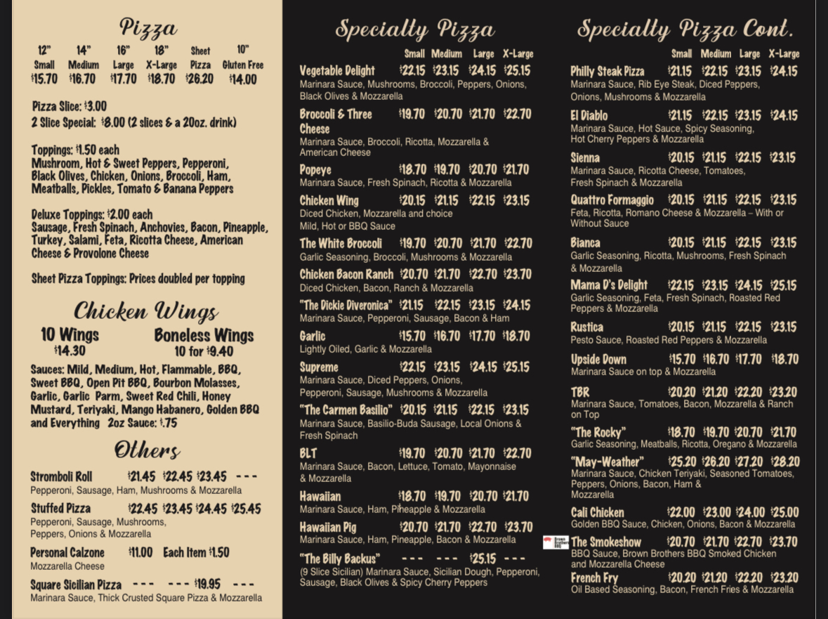 Joe’s New York Pizzeria Menu (2025 Update)